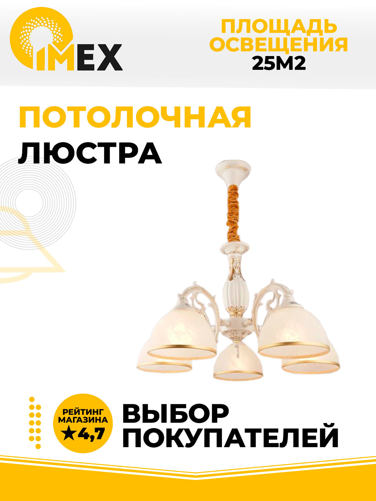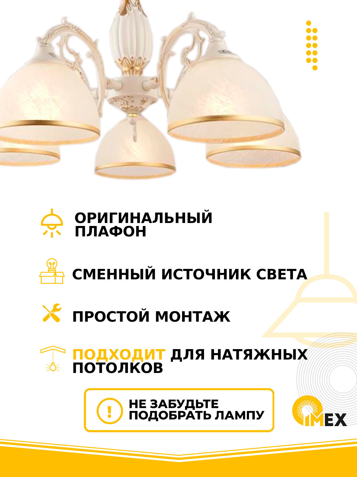 Подвесная люстра - продукт известной компании Imex (Германия). Имеет максимальную мощность 180 Вт, освещает площадь до 9 кв. м. Отлично подойдет для таких мест, как гостиная, кафе, спальня, кухня, над обеденным столом, кабинет. Впишется в интерьеры следующих стилей: классический.