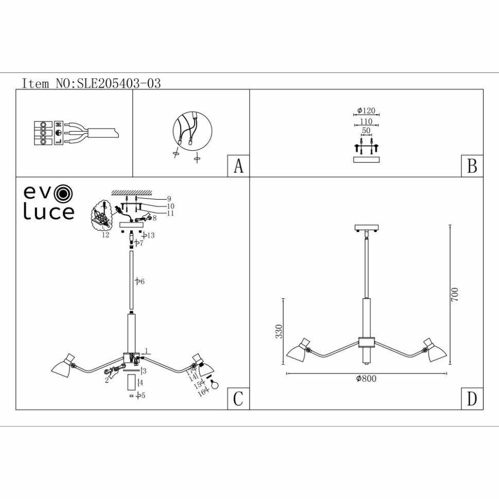 Подвесная люстра Evoluce Lita SLE205403-03