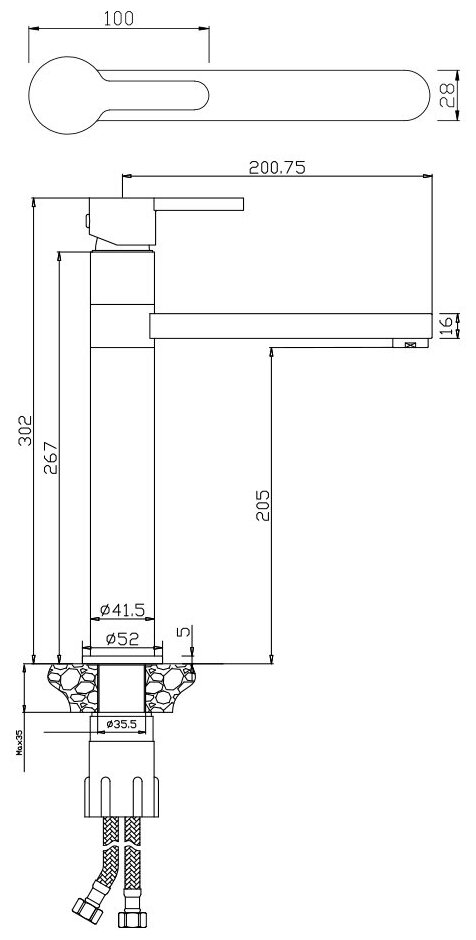 | Диаметр отверстия в раковине | 32-35 |