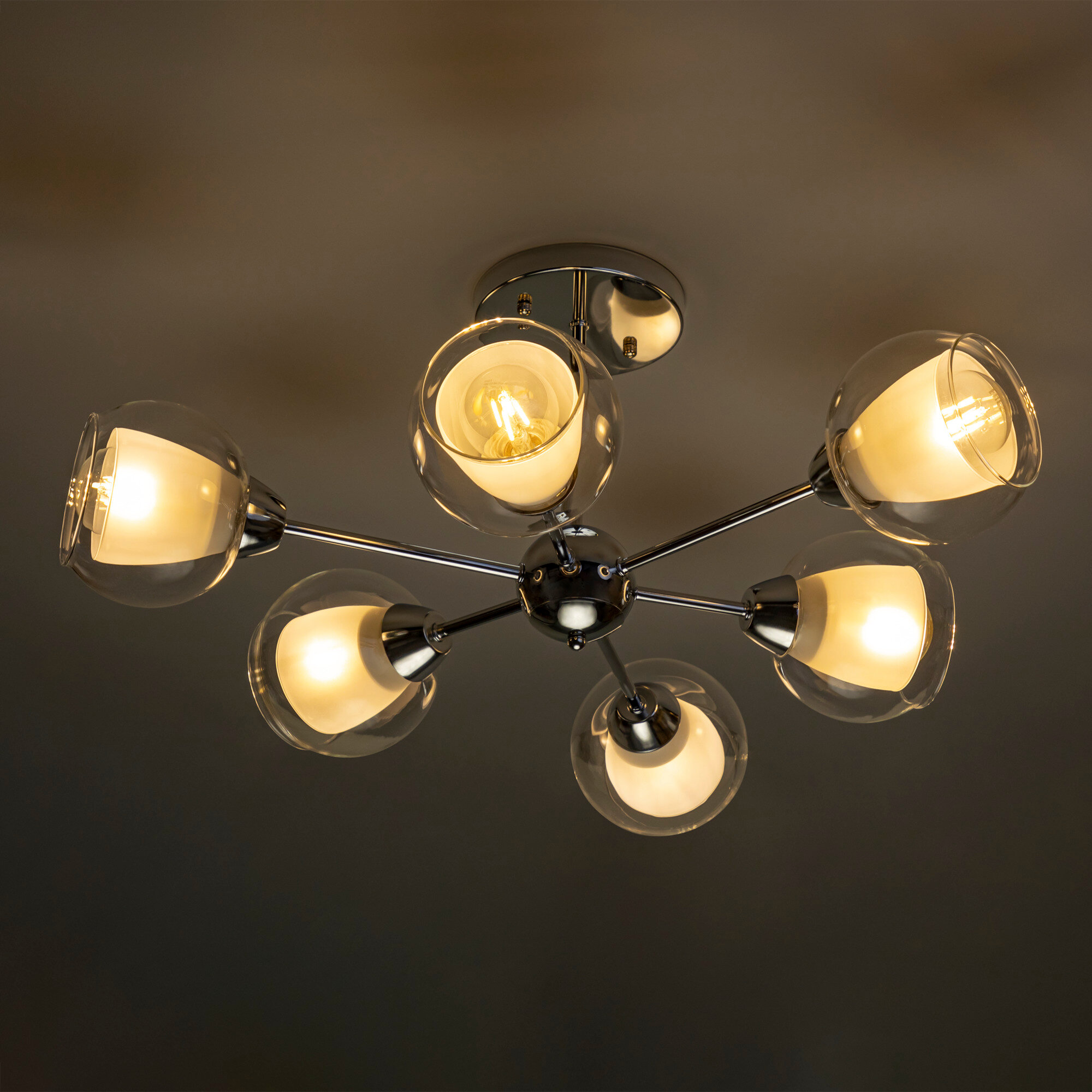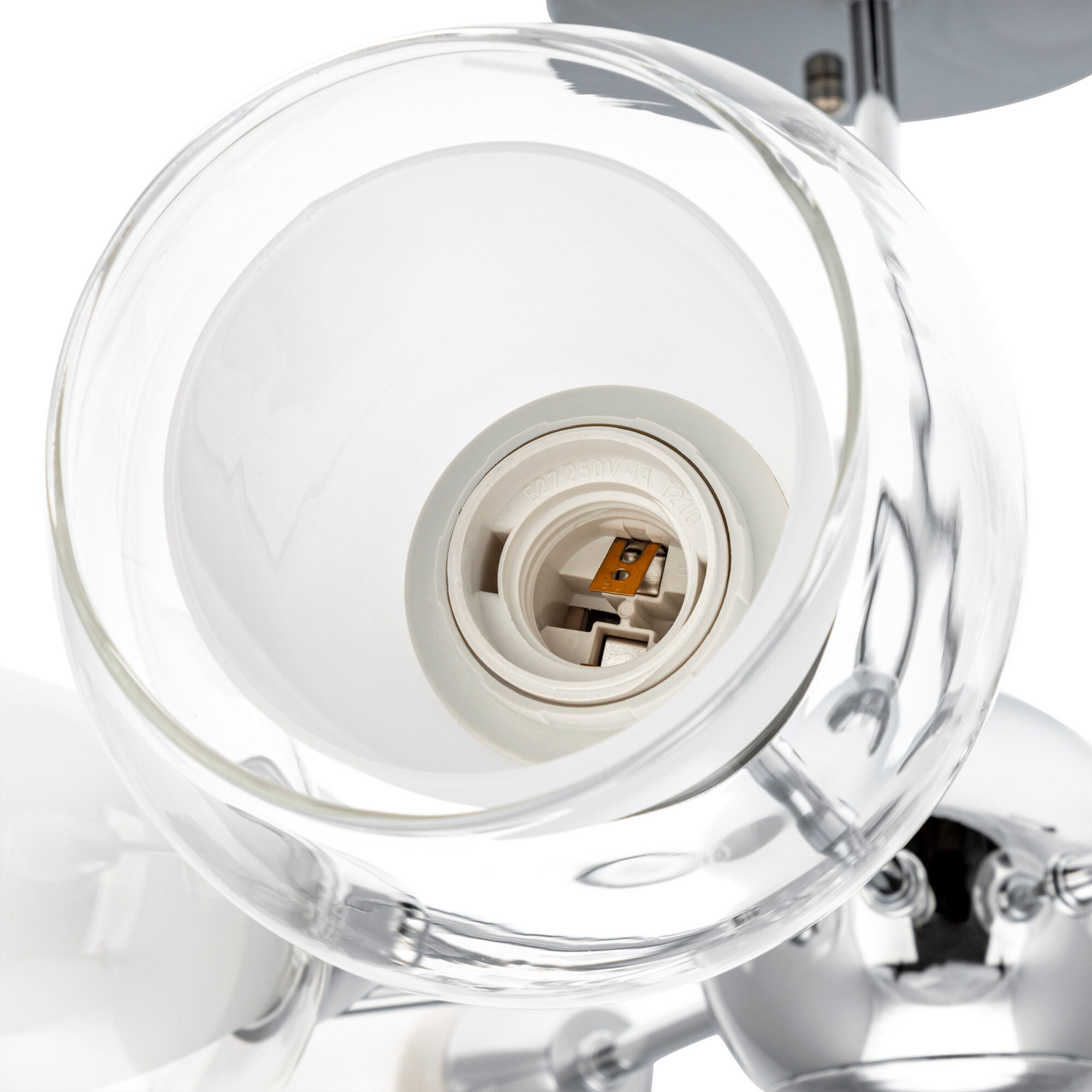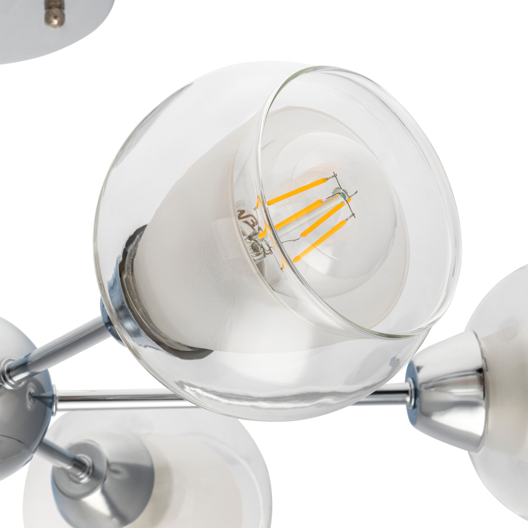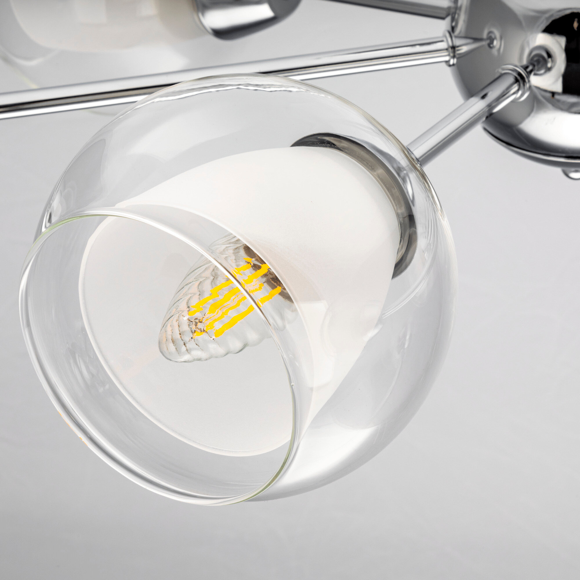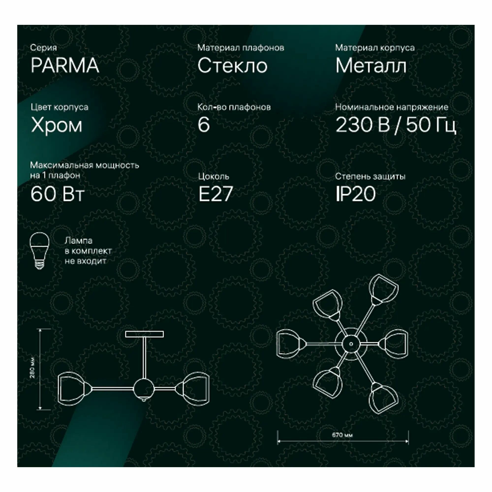Потолочная люстра Ritter серии PARMA со стандартным цоколем E27 для светодиодных ламп или ламп накаливания. Надежное металлическое основание и классические плафоны из стекла - для равномерного освещения жилых помещений. Оригинальное расположение и дизайн плафонов не позволят люстре затеряться в интерьере. Она станет завершающим штрихом пространства в классическом стиле или вдохновит на новые дизайнерские свершения.Кол-во плафонов: 6. Цоколь: E27. Цвет корпуса: хром. Материал корпуса: металл. Материал плафонов: стекло. Макс. мощность на 1 плафон 60 Вт. Напряжение 230 В / 50 Гц. Размер: 670х670х280 мм