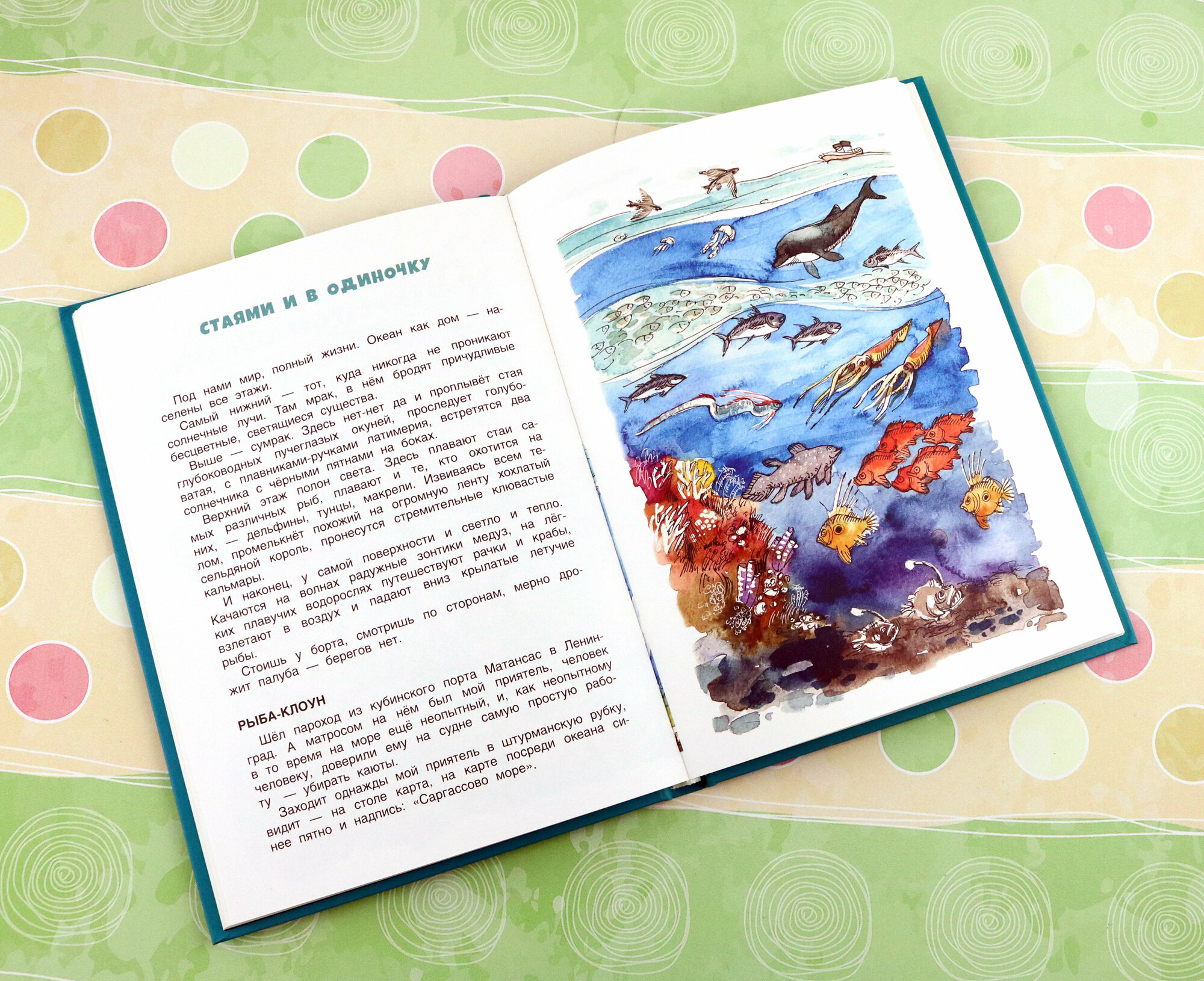 Иллюстрации Геннадия Целищева у ИДМ не просто привычнее. Они точнее. Все - таки у автора описываются не фигуральные, а вполне реальные рыбы и животные. Но что делать? В новом издании иллюстрации тоже красочные, реалистичные. Берём. Потому что школа уже близко. Потому что Сахарнов это сокровище. Потому что издание добротное, с твёрдым надёжным переплётом, белым плотным офсетом, не тяжёлое, оптимального размера для чтения и ношения в школу.