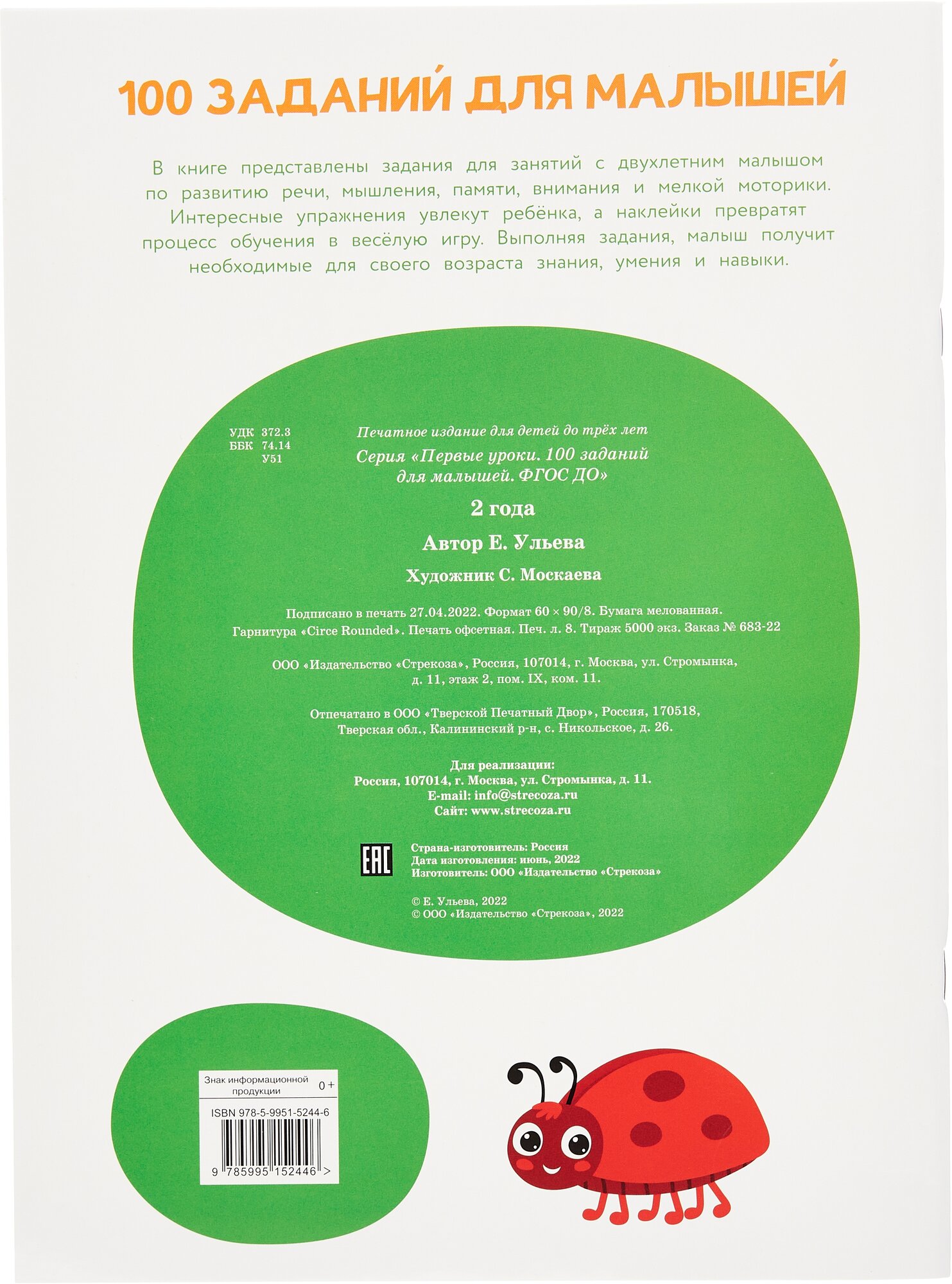 100 заданий для малышей 2+ (Ульева Елена Александровна); Стрекоза Торговый дом ООО, 2022