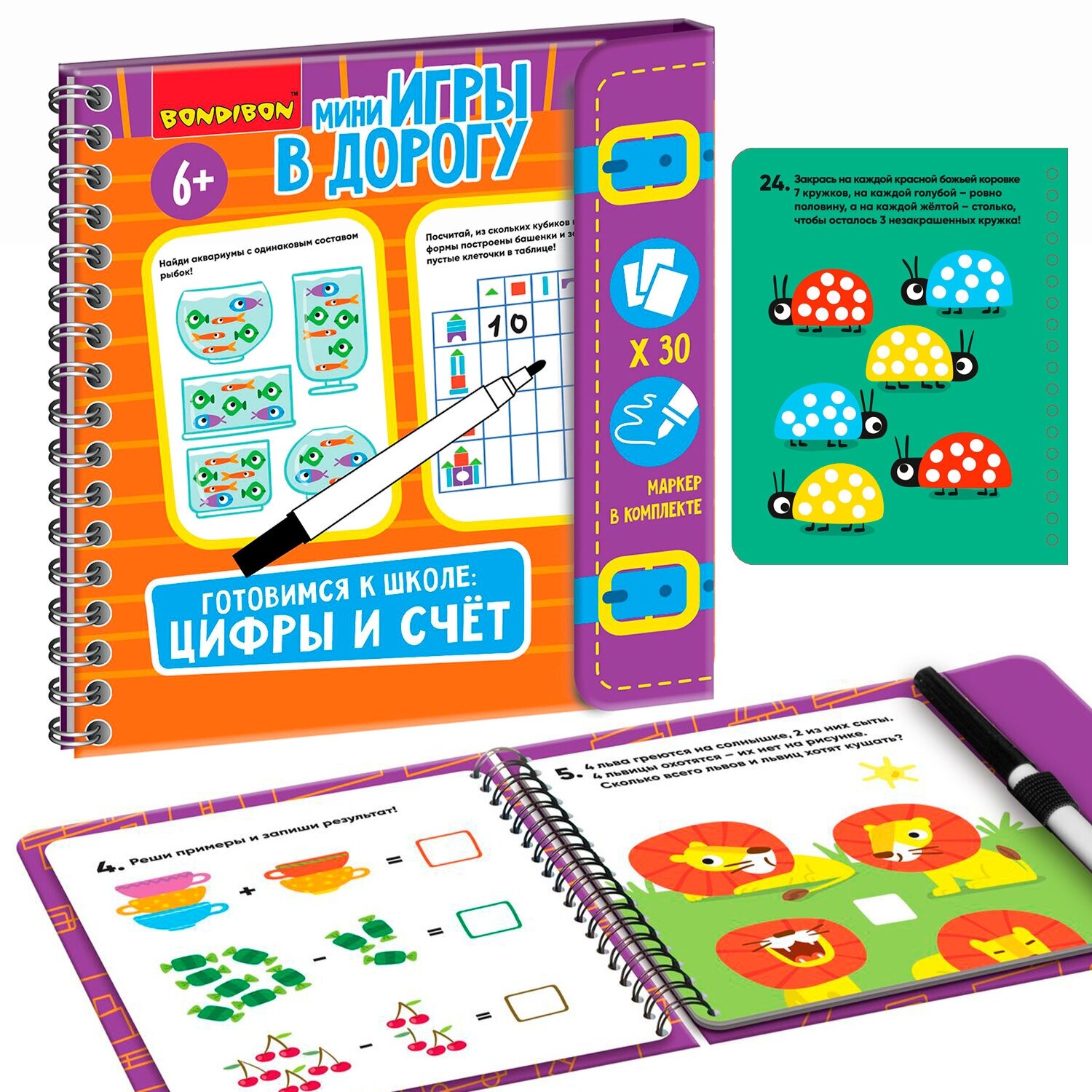 Мини-игры в дорогу Готовимся к школе:цифры и счет ВВ5048 Bondibon Готовимся к школе: цифры и счет со стирающимся маркером