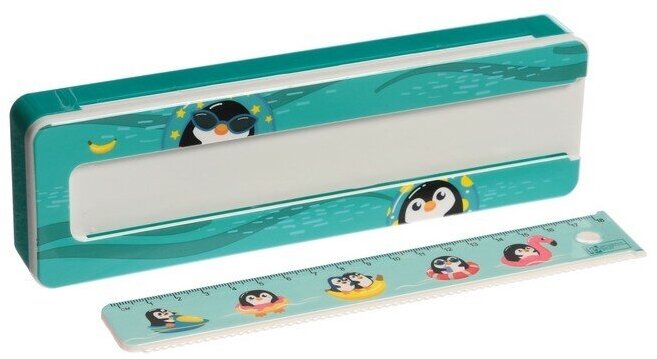 Пенал шк. с линейкой плас. 21х6.4х2.5 Пингв.57964 Феникс+