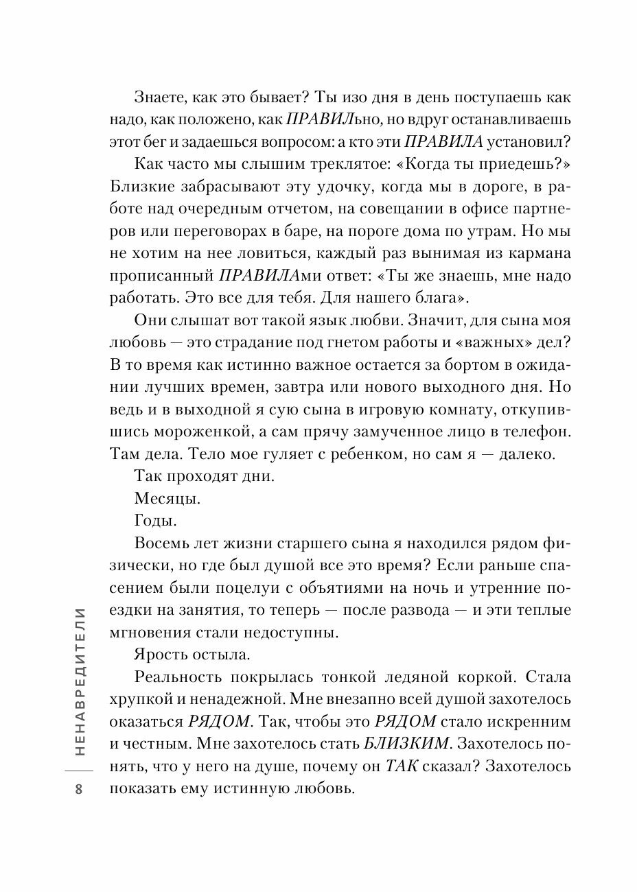 В своей книге "Ненавредители" Игорь Сивов предлагает 7 практик, которые помогут переосмыслить подход к родительству. Отказаться от воспитания в режиме "кнута и пряника" в пользу открытых, наполненных взаимным уважением отношений. Стать настоящим другом своему ребенку, оставаясь при этом уверенным в себе родителем.