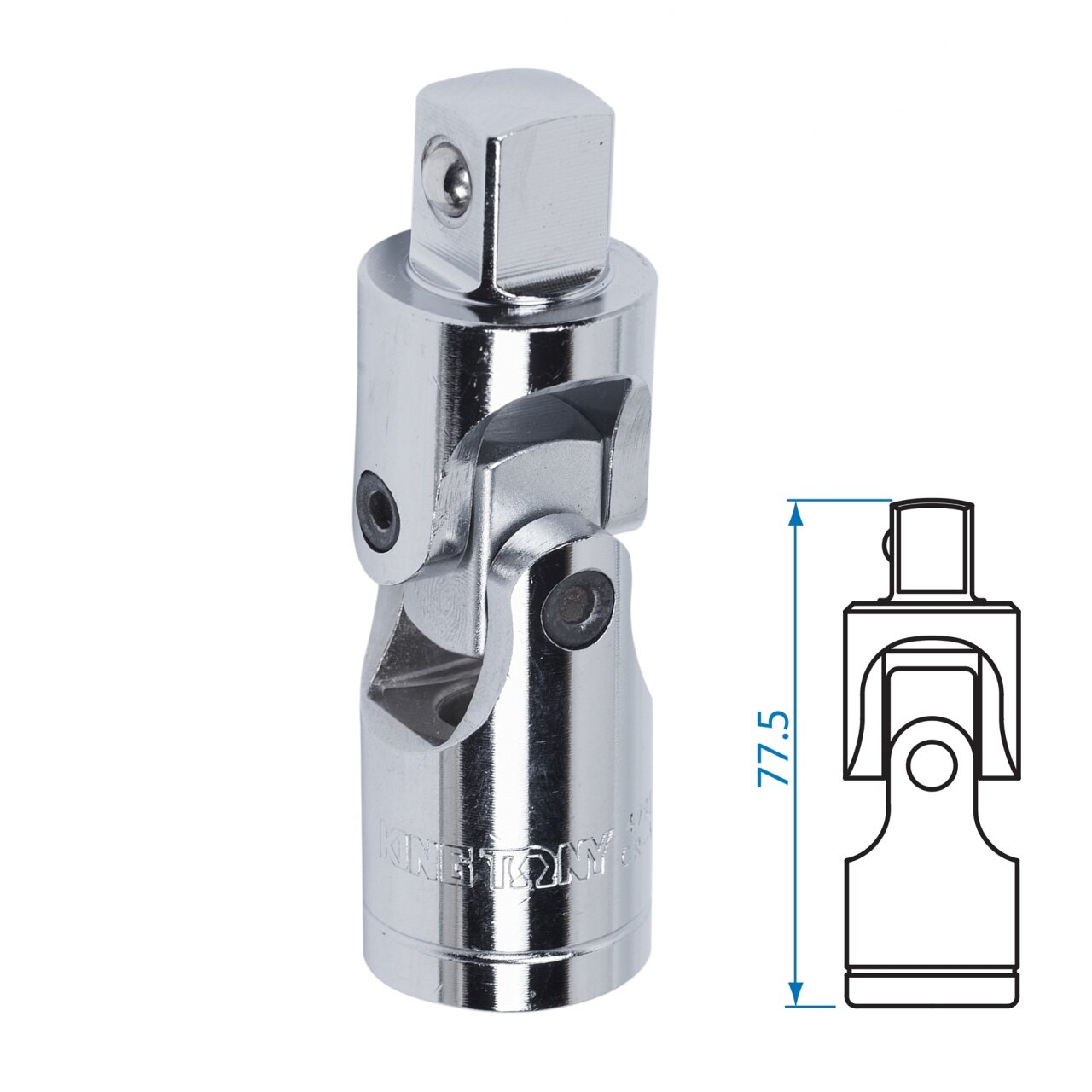 Назначение: Специализированный переходник с шарнирным механизмом для удобства работы с крепежными соединениями под различными углами. что особенно актуально в местах с ограниченным доступом. Область применения: На станциях технического обслуживания автомобилей (стоа). в автосервисах и автомастерских. Особенности: • Изделие надежно фиксируется в посадочном квадрате используемого инструмента за счет хвостовика с подпружиненным шариковым фиксатором. • Кардан позволяет выполнять работы с крепежом в труднодоступных местах. а также в ограниченном пространстве. Технические характеристики: Посадочный квадрат 1/2" Длина. мм 77.5 Вес. кг 0.156