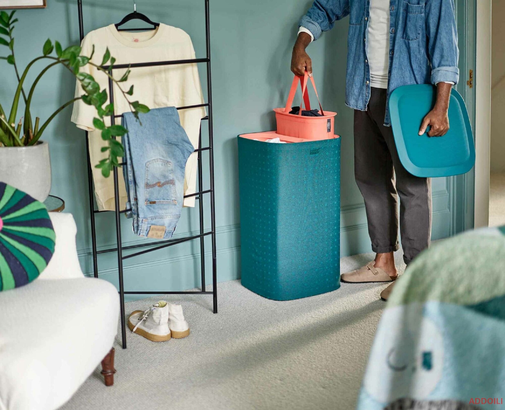 Корзина имеет два отделения по 30 литров, которые помогут разделить светлое и цветное/черное белье. Мешки с удобными ручками легко снимаются. Дополнительные ручки на дне мешков помогают высыпать содержимое наружу. Корзина поставляется с полной инструкцией по сборке.