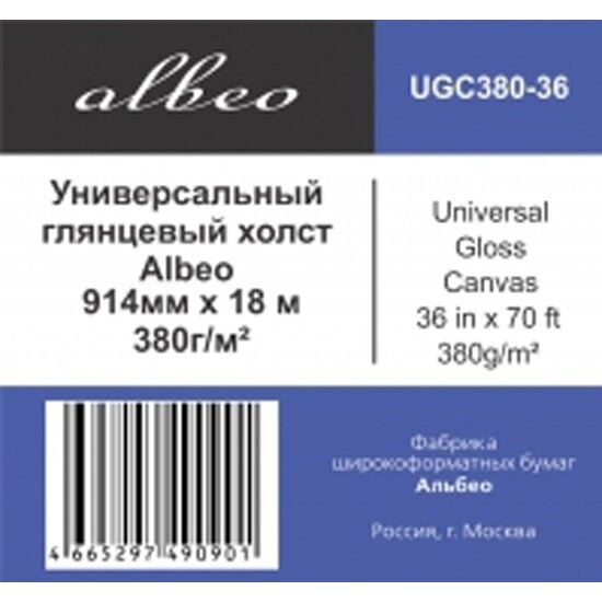 Холст Albeo Universal Gloss Canvas 36 380 г/м2 0.914x18 м, 50.8 мм (UGC380-36)