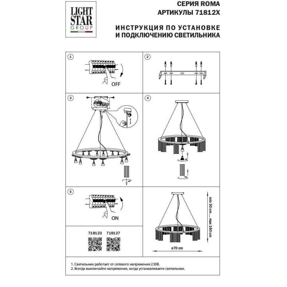 Подвесная люстра Roma - продукт известной компании Lightstar (Италия). Имеет максимальную мощность 336 Вт, освещает площадь до 24 кв. м. Отлично подойдет для таких мест, как гостиная, спальня, кухня, над обеденным столом, кабинет, над кухонным островом, зал. Впишется в интерьеры следующих стилей: современный, арт-деко, хай-тек, минимализм.