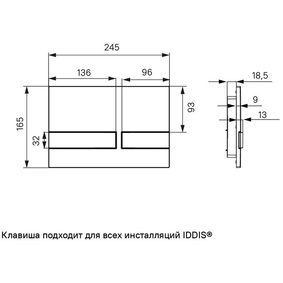 Клавиша смыва Iddis Unifix прослужит дольше благодаря прочному и износостойкому пластику и надежному креплению рамки на шурупы. На матовой поверхности не остаются следы пальцев, что значительно упрощает уборку.