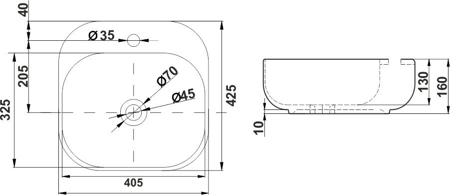 | Отверстие под перелив | нет |