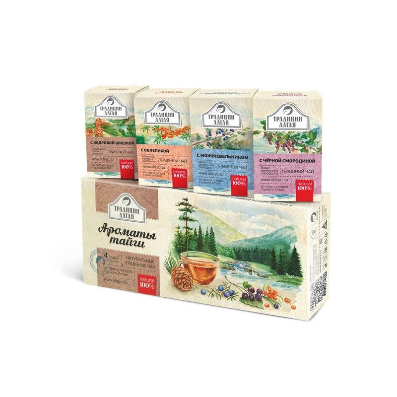 Сервис сравнения цен СкидкаГИД предлагает сравнить цены на товар «Алтэя - Подарочный набор травяных чаев "Ароматы тайги" 4 х 50 г (4670020491186)»