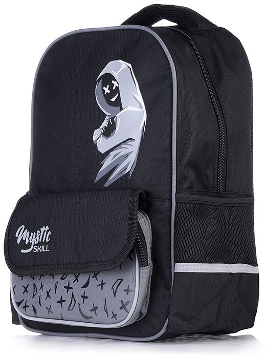 Рюкзак школьный "Мистик Мэн" (28х37,5х13,5 см) 59263. • Размеры рюкзака: 28х37.5х13.5 см.• Количество отделений - 1.• Застёжка - молния.• Количество наружных карманов - 3.• Тип спинки - формоустойчивая жесткая спинка из сетчатой ткани и поролона.• Уплотнённое дно.• Водоотталкивающая ткань.• Лямки, регулируемые по длине.• Светоотражающие элементы.• Материал: полиэстер.