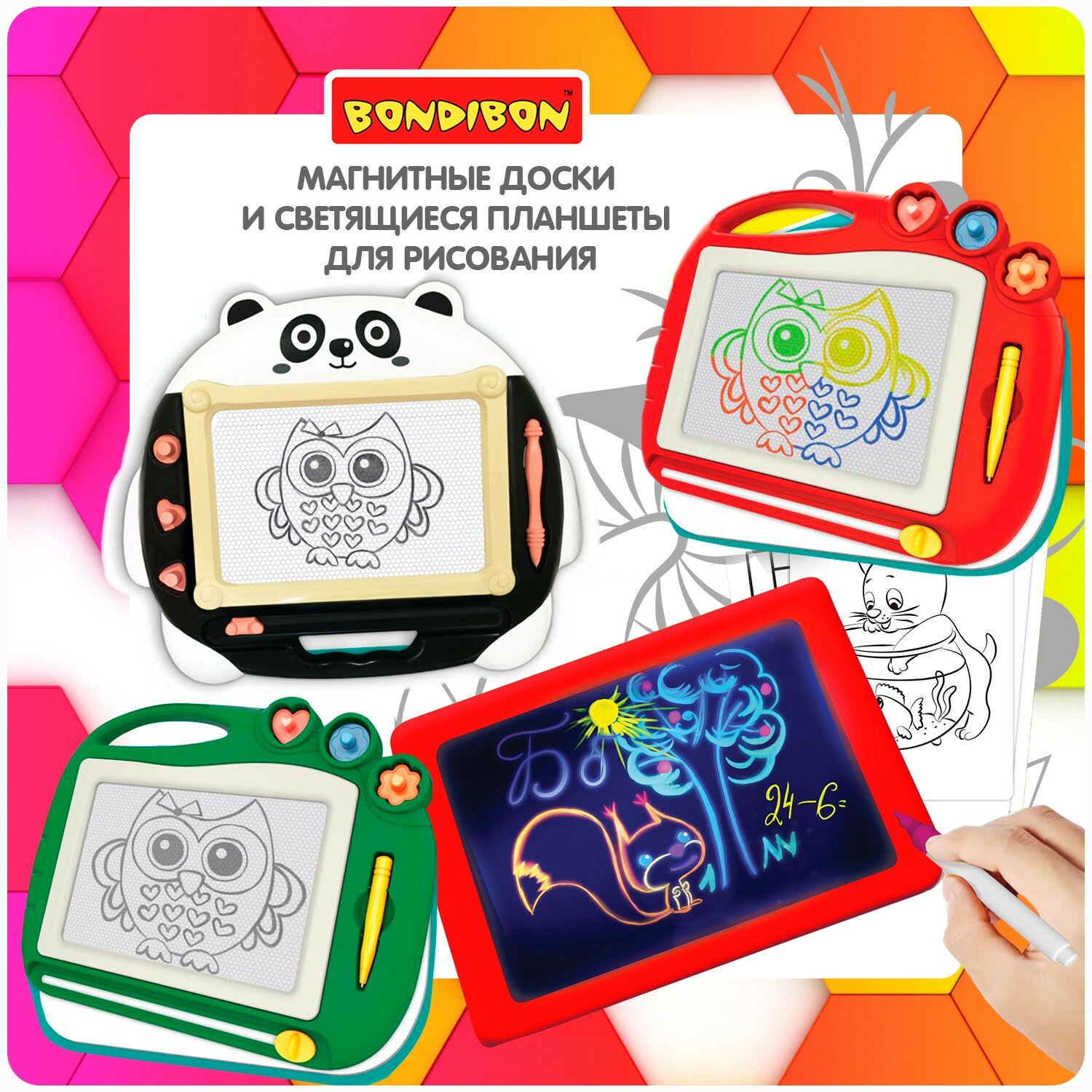 Доска для рисования со стилусом и цветными изображениями от Bondibon - отличный подарок для творческих мальчиков и девочек!