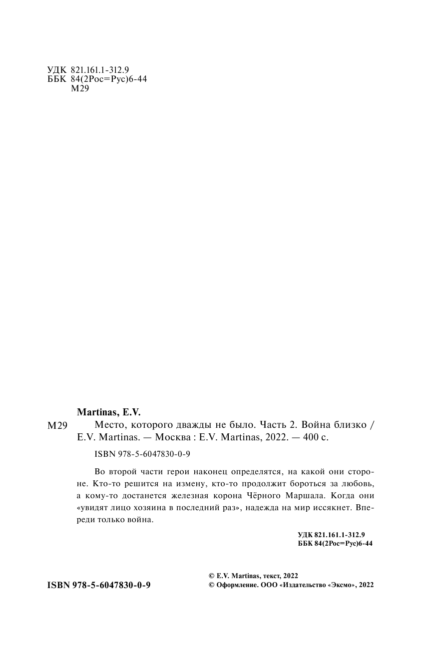 Место которого дважды не было. Часть 2. Война близко (Мартемьянова Елена Валерьевна); Эксмо, 2022