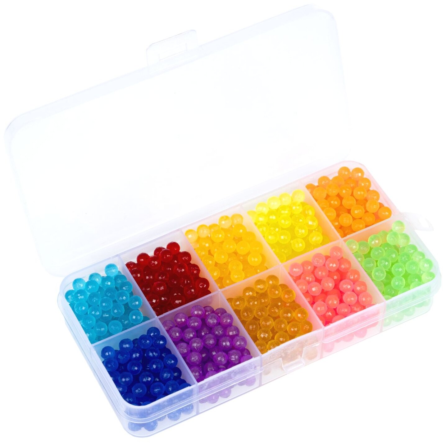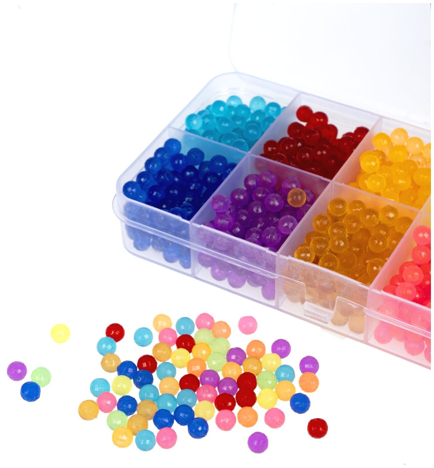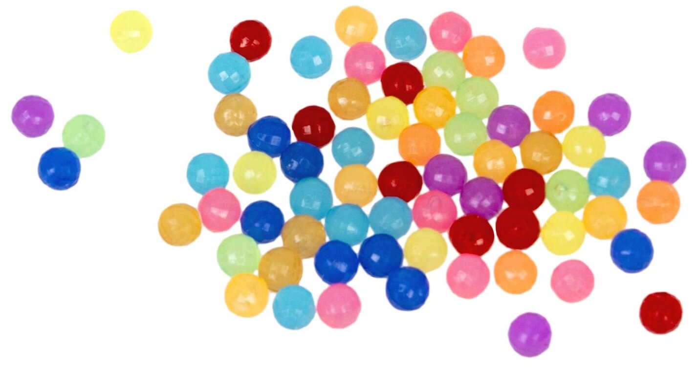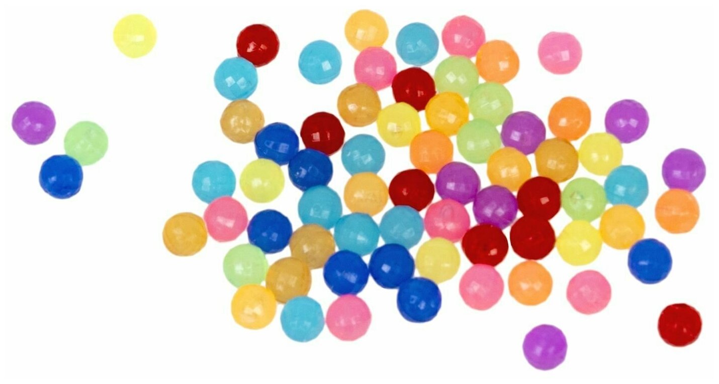 Разноцветные бусины имеют много граней. Благодаря этому, они переливаются еще ярче!