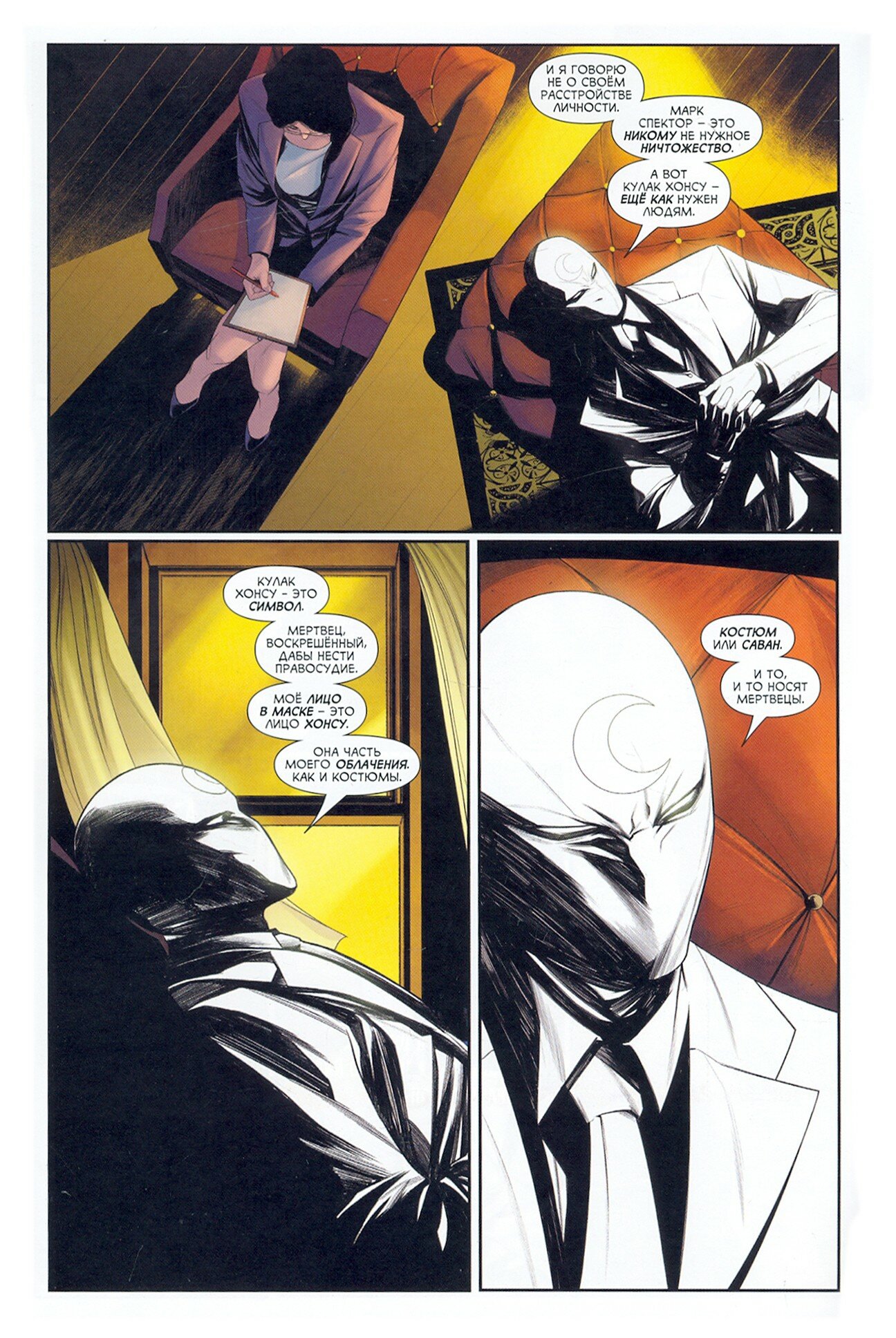 -  Дмитрий- 30 августа 20224/5 В этом выпуске присутствует много экшена и неплохо раскрывается личность Марка Спектора. Злодей не особо интересный, больше выполняет функцию для рефлексии главного героя. Подобная функция есть и у персонажа Тигры, но она ощущается всё же более человечной наделённой характером.