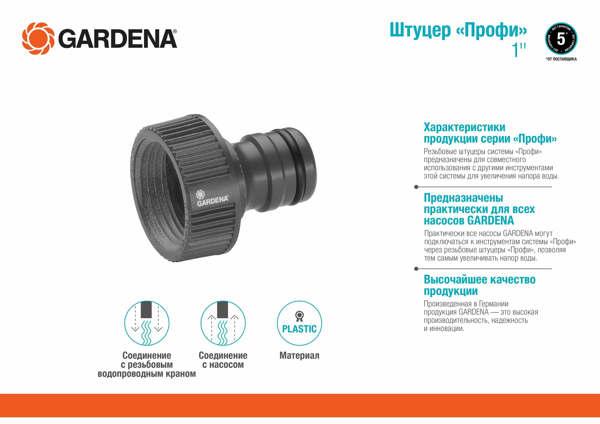 Штуцер резьбовой «Профи» 3/4 (Gardena), 08191 обзор 02801-20.000.00