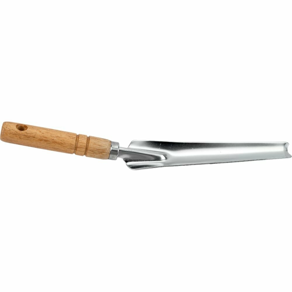 Рабочая часть – углеродистая сталь с нержавеющим покрытием. Толщина совка 1,5 мм. Деревянная рукоятка.
