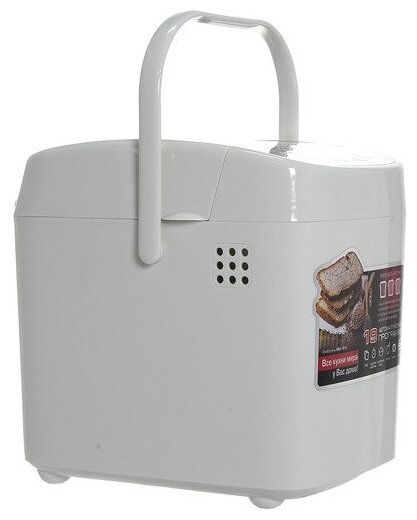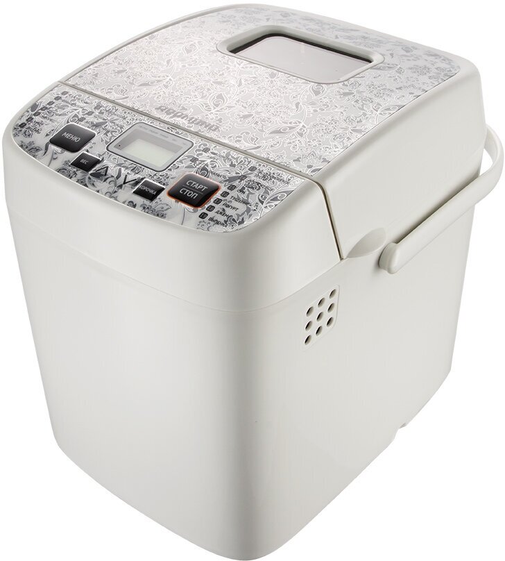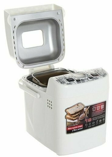 | Программы | классический хлеб, французский хлеб, цельнозерновой хлеб, экспресс, сдоба, безглютеновый хлеб, кекс, выпечка, тушение, йогурт, ржаной хлеб, молочная каша, бездрожжевое тесто, тушение, суп, бородинский хлеб, десерты, дрожжевое тесто, хлеб с добавками |