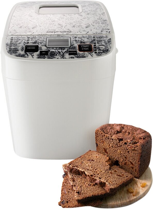 | Рецепты и программы | безглютеновая выпечка;бездрожжевая выпечка;белый хлеб;бородинский хлеб;варенье;десертная выпечка;йогурт;каша;кекс;ржаной хлеб; сладкая выпечка; суп; тушение; ускоренная выпечка из готовой смеси; хлеб с начинкой; цельнозерновой хлеб |