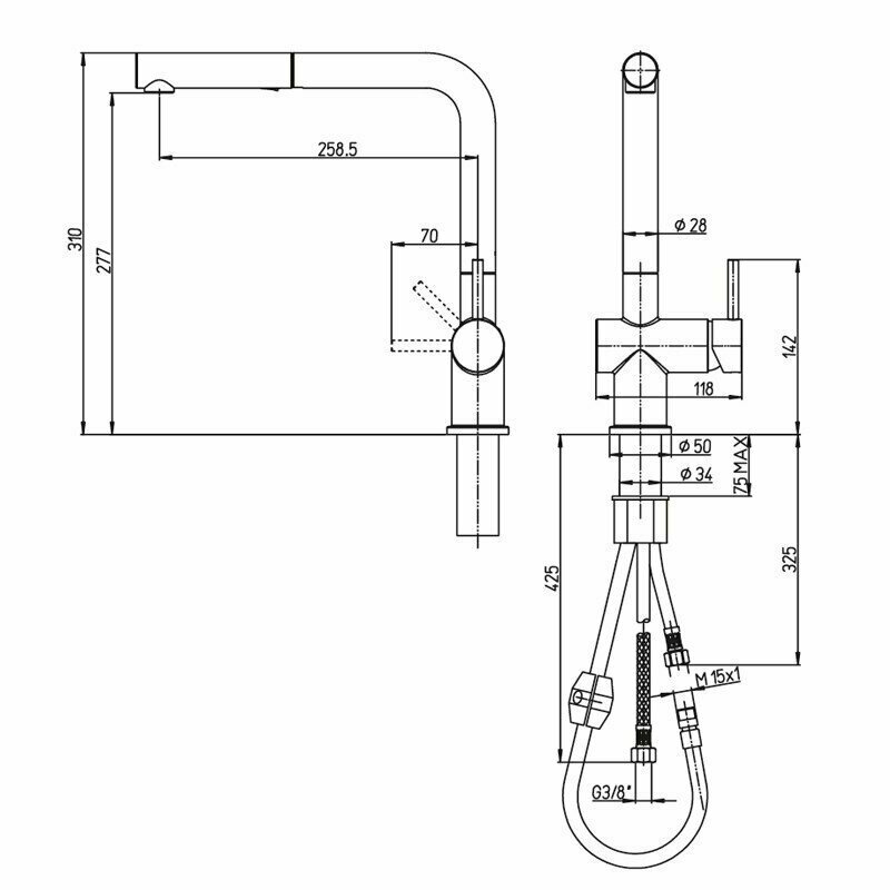 | Исполнение шланга | металлический,двойная оплетка,растягивающийся |
