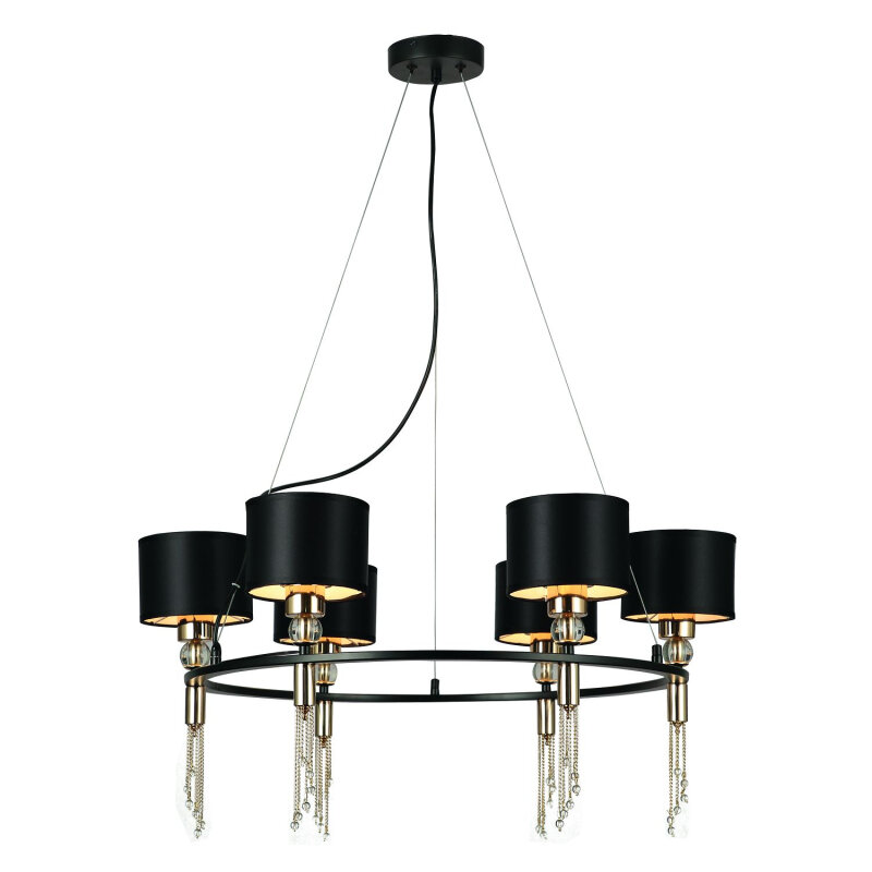 | Дополнительные характеристики | каркас черного цвета, плафоны из гладкой черной ткани, декоративные элементы и цепочки золотого цвета, стеклянный декоративный шар, хрустальные подвески |