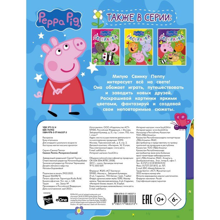 Свинка Пеппа. Раскраска (синяя) (Тишков С.); ИЗДАТЕЛЬСТВО "АСТ", 2022