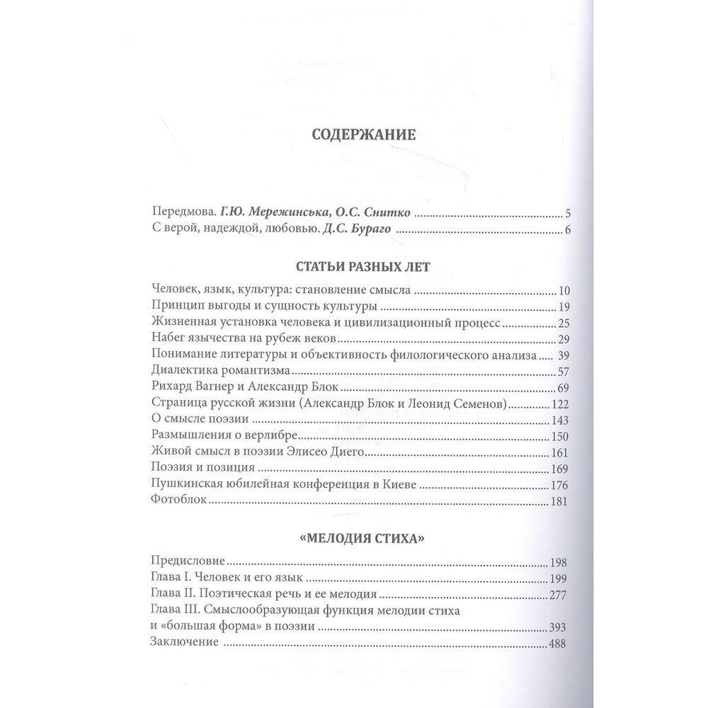 В настоящее, наиболее полное, издание выдающегося украинского литературоведа, исследователя украинской и российской поэзии начала ХХ века, доктора филологических наук, профессора Сергея Борисовича Бураго (1945-2000) вошли статьи разных лет, исследование "Мелодия стиха", в котором представлена оригинальная теория мелодики стиха как универсального смыслообразующего начала поэтической речи, фрагменты выступлений в журнале на сцене "Collegium", а также статьи и воспоминания, посвященные его жизни и творчеству. Книга предназначена для филологов, философов, культурологов, а также для всех тех, кому небезразлична судьба человеческой культуры