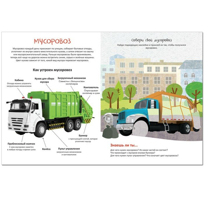 Книга «В городе» серии «Собери машинку» — это необычный конструктор из фотонаклеек. Доклеивая недостающие части на фотографии машин, ребенок не только познакомится различными видами транспорта, но и узнает много интересного и полезного: как устроен легковой автомобиль, почему мусоровозы бывают разных цветов, какие необычные детали и особенности позволяют легко узнать поливальную машину. Закрепить полученные знания помогут вопросы и задания на каждом развороте.