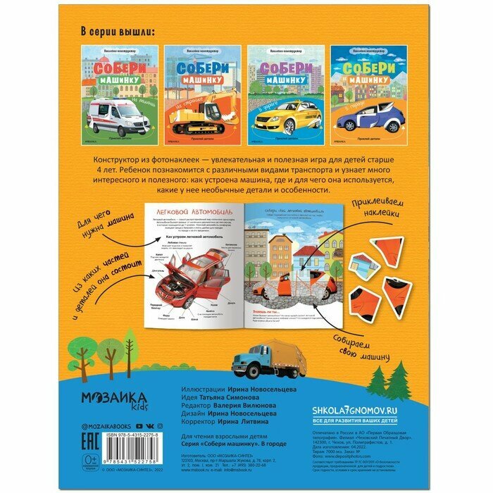 Собери машинку В городе Наклейки-конструктор (Татьяна Симонова); МОЗАИКА kids, 2023