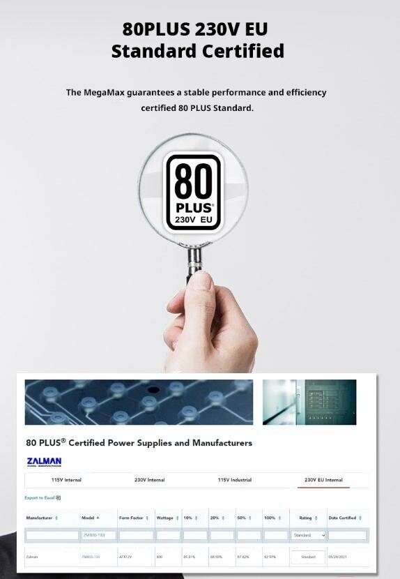 Блок питания Zalman MegaMax (800W) - для современных персональных компьютерных систем бюджетного и среднего уровня сложности, сертифицирован и соответствует стандарту 80 PLUS.