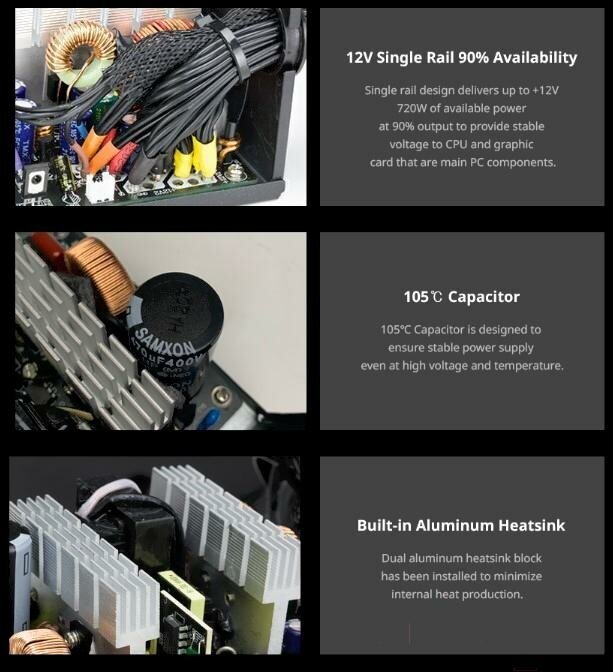 - Оптимальное охлаждение компонентной базы блока питания: активное - при помощи тихого 120мм вентилятора и пассивное – при помощи встроенного двойного алюминиевого радиатора;