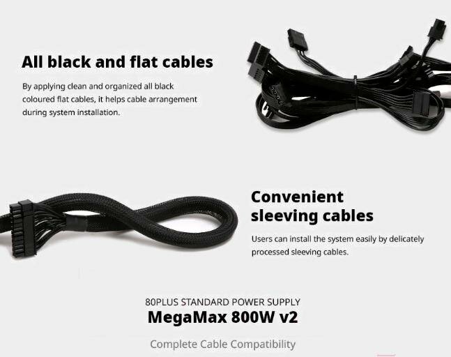 - Оптимальная длина кабелей для подключения к компонентам, для обеспечения питанием и удобной сборки системы. Плоские черные кабеля надежные, прочные и достаточно эластичные для укладки и организации кабель менеджмента в современном корпусе;
