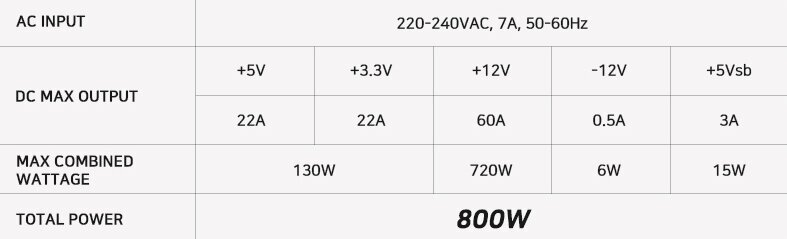 | Мощность по каналам, суммарно по (+12V1, 12V2, ...), Вт | 720 |