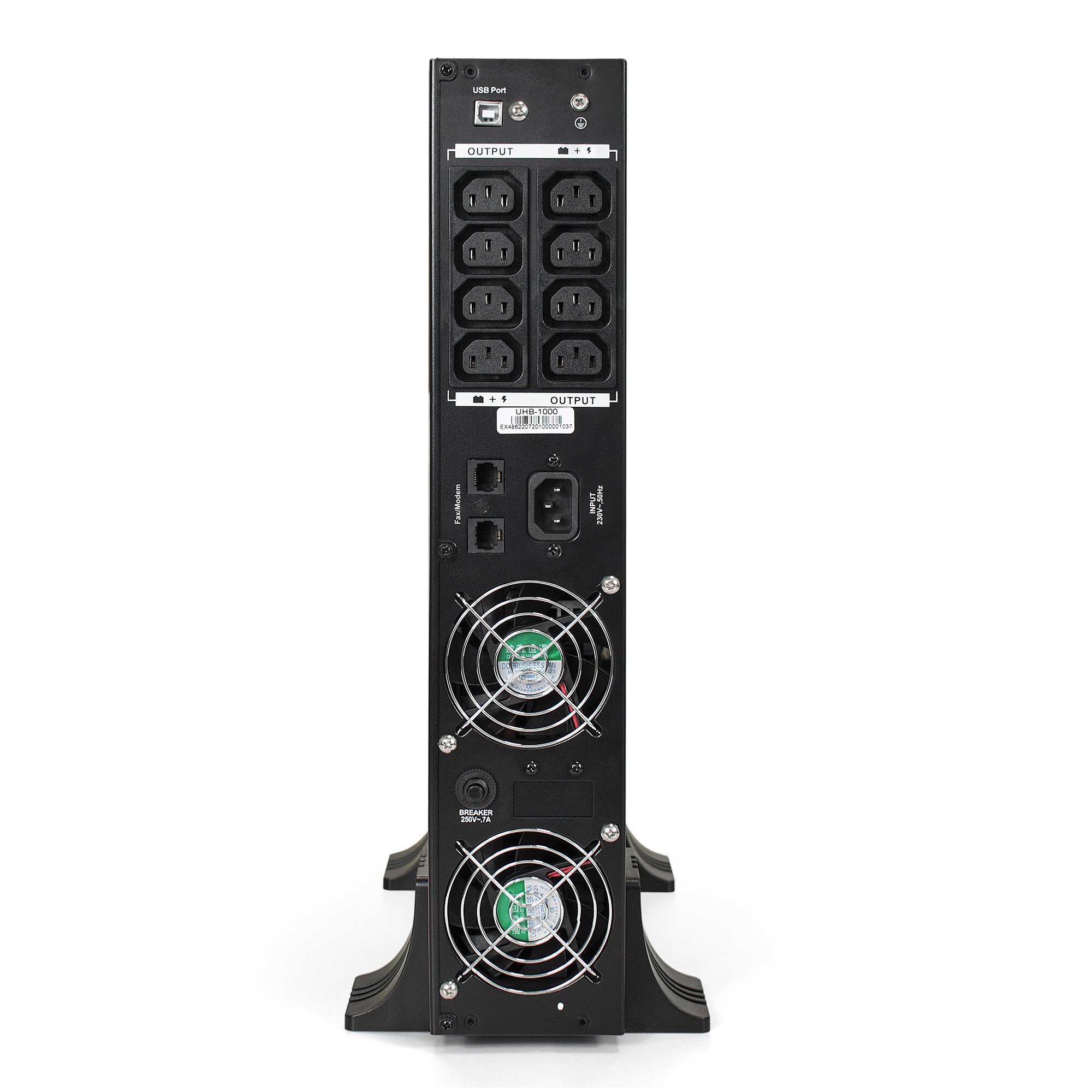 ИБП серии UHB имеет выходное напряжение в виде чистой неискаженной синусоиды и обеспечивает стабильное питание компьютерной техники (ПК, серверы, сетевое оборудование). Допускается горизонтальное и вертикальное размещение, а также установку в стойку 19". Все ИБП оснащены LCD дисплеем. ИБП этой серии имеют линейно-интерактивную архитектуру, синусоидальное выходное напряжение, ЖК-дисплей, отображающий информацию о параметрах электросети и устройства. Оснащены встроенным стабилизатором напряжения (AVR). Подключение нагрузки осуществляется к выходным розеткам типа IEC320 С13.
