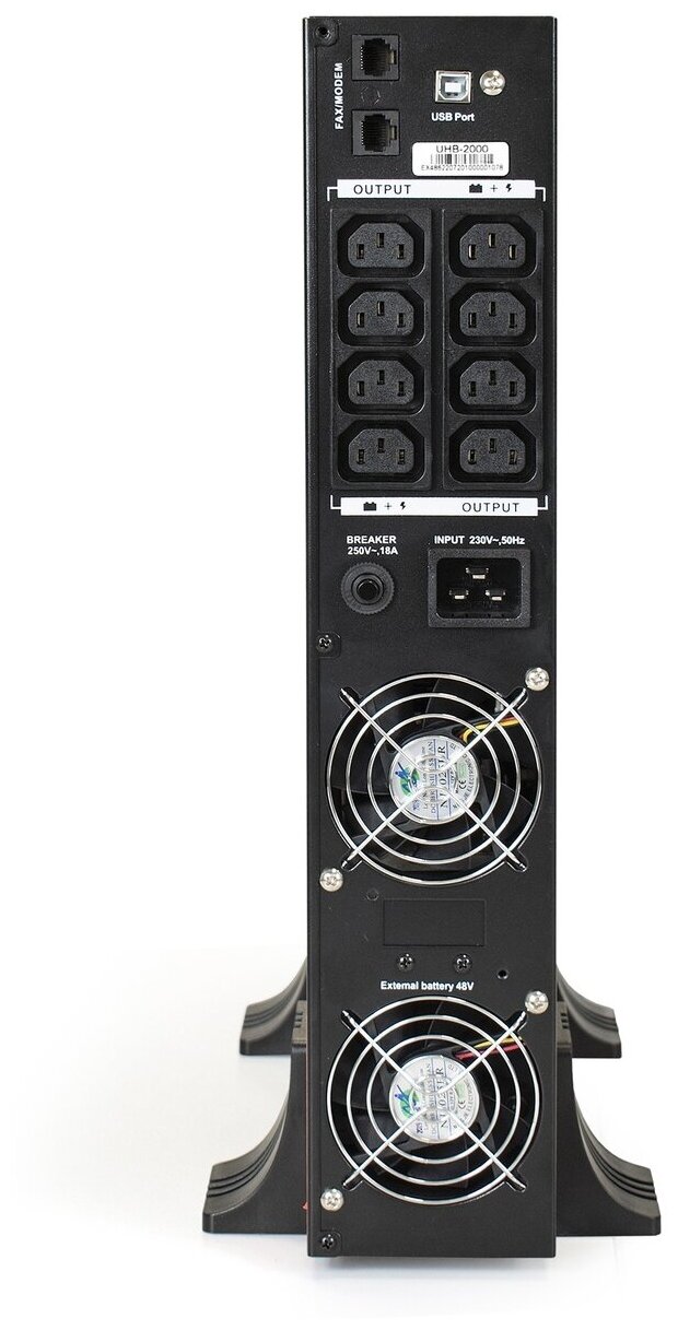 ИБП серии UHB имеет выходное напряжение в виде чистой неискаженной синусоиды и обеспечивает стабильное питание компьютерной техники (ПК, серверы, сетевое оборудование). Допускается горизонтальное и вертикальное размещение, а также установку в стойку 19". Все ИБП оснащены LCD дисплеем. ИБП этой серии имеют линейно-интерактивную архитектуру, синусоидальное выходное напряжение, ЖК-дисплей, отображающий информацию о параметрах электросети и устройства. Оснащены встроенным стабилизатором напряжения (AVR). Подключение нагрузки осуществляется к выходным розеткам типа IEC320 С13.