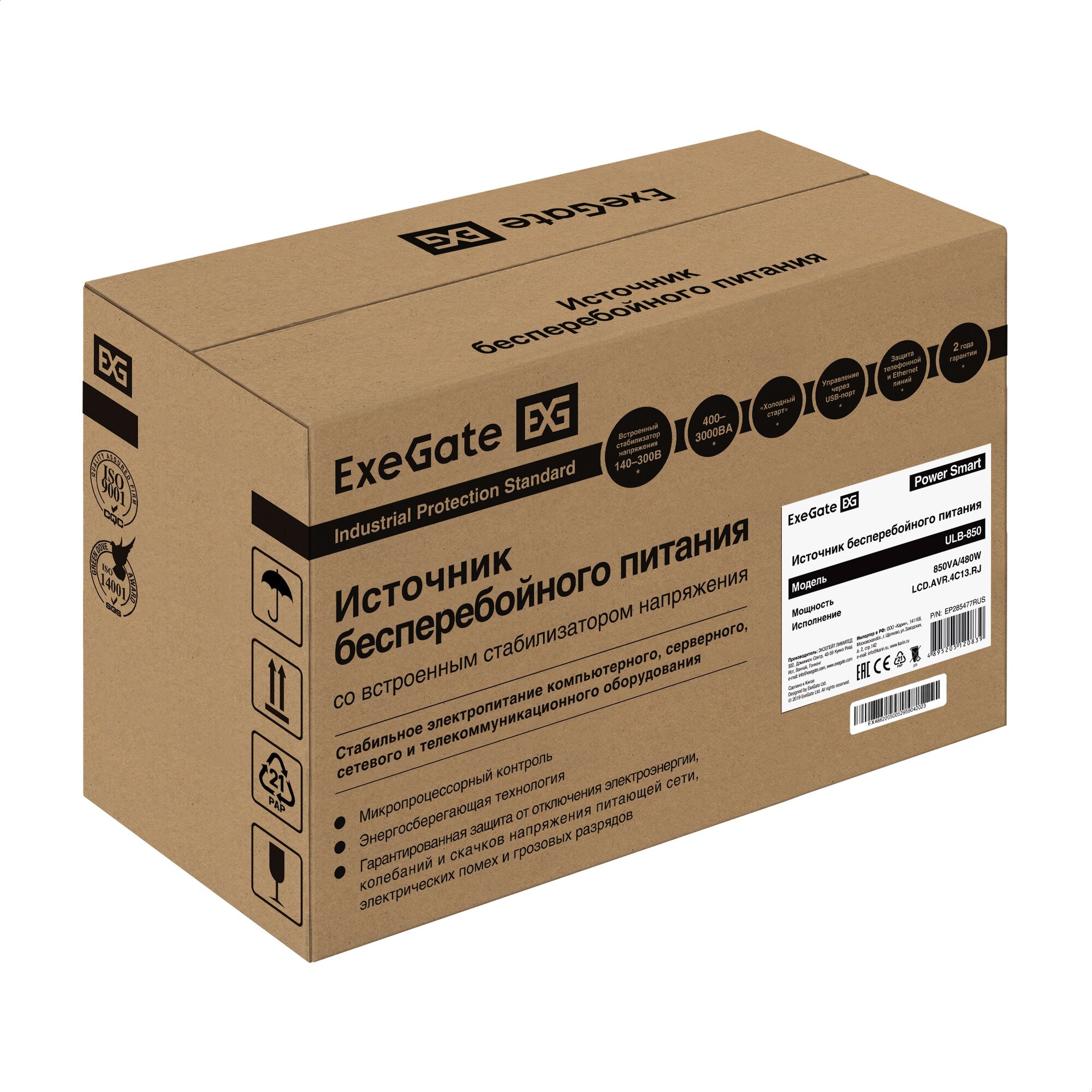 ИБП ExeGate Power Smart ULB-850.LCD.AVR.4C13.RJ
