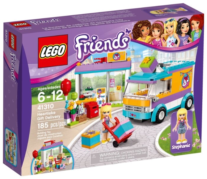 LEGO Friends 41310 Служба доставки подарков - набор, который сможет заинтересовать маленькую девочку. Все в Хартлейк Сити радуются, увидев красочный фургон Стефани, поскольку это целый «праздник на колесах»! Она занимается тем, что доставляет подарки на дом. Сегодня как раз ей нужно определиться с сувениром для заказчика, помоги ей справиться и развези все вовремя!
