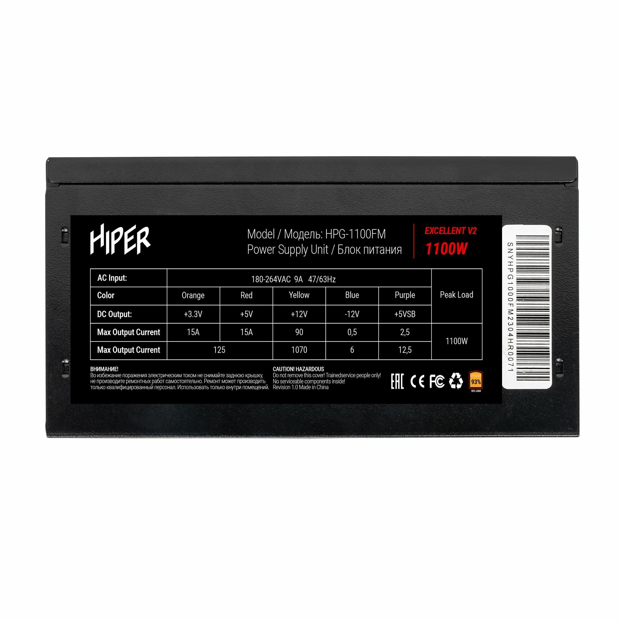 Блок питания ATX HIPER 1100W 80+Gold APFC 140mm fan full modular HPG-1100FM EXCELLENT