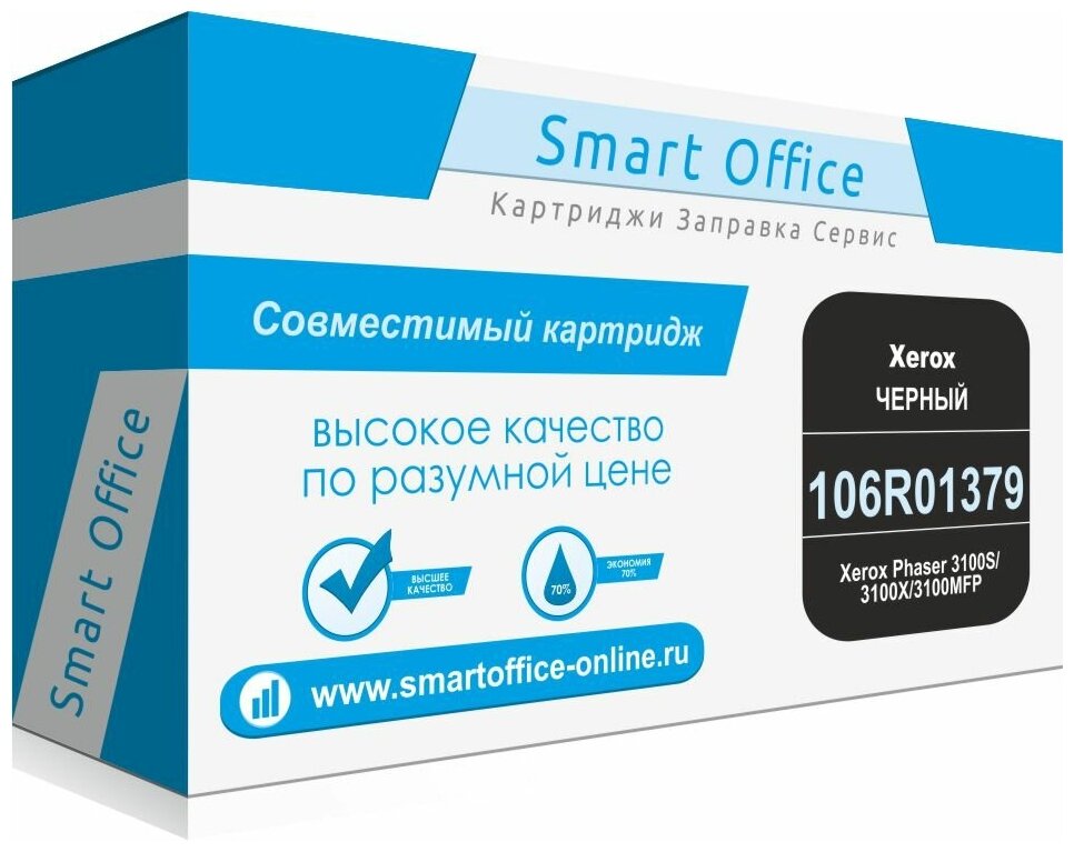 Картридж 106R01379 для Xerox Phaser 3100S/3100X/3100MFP, совместимый, черный, 6000 стр. При производстве картриджа Xerox 106R01379 используется японский тонер и комплектующие, что гарантирует Вам превосходное качество печати, не уступающее оригинальным картриджам Phaser. Картридж Smart Graphics Xerox 106R01379 полностью совместим с принтерами Xerox Phaser 3100S/3100X/3100MFP, а так же имеет такой же ресурс печати как и оригинальный картридж Xerox 106R01379. Установленный чип в картридж предотвращает блокировку печати и позволяет просматривать статистику о количестве отпечатаных страниц. Корпус совместимого картриджа Xerox 106R01379 изготовлен из качественного пластика ABS, что позволяет заправлять или восстанавливать картридж неограниченное число циклов. При покупке от трех совместимых картриджей Xerox 106R01379 предоставим Вам дополнительную скидку, а также скидку 5% на заправку картриджей. Вы можете заказать доставку или забрать товар самовывозом. Назначение: Для лазерных принтеров и МФУ Модель: Xerox 106R01379 Ресурс, страниц: 6000 Цвет: Черный Совместимость: Xerox Phaser 3100S/3100X/3100MFP Условия хранения: беречь картридж Xerox 106R01379 от воздействия высокой температуры, повышенной влажности и мощных электромагнитных полей. Скачать электронное руководство пользователя для Xerox Phaser 3100S/3100X/3100MFP Информация о товаре на сайте носит справочный характер и не является публичной офертой (Ст. 437 ГК РФ). Характеристики товара и спецификации, а также комплект поставки товара могут быть изменены производителем без предварительного уведомления.