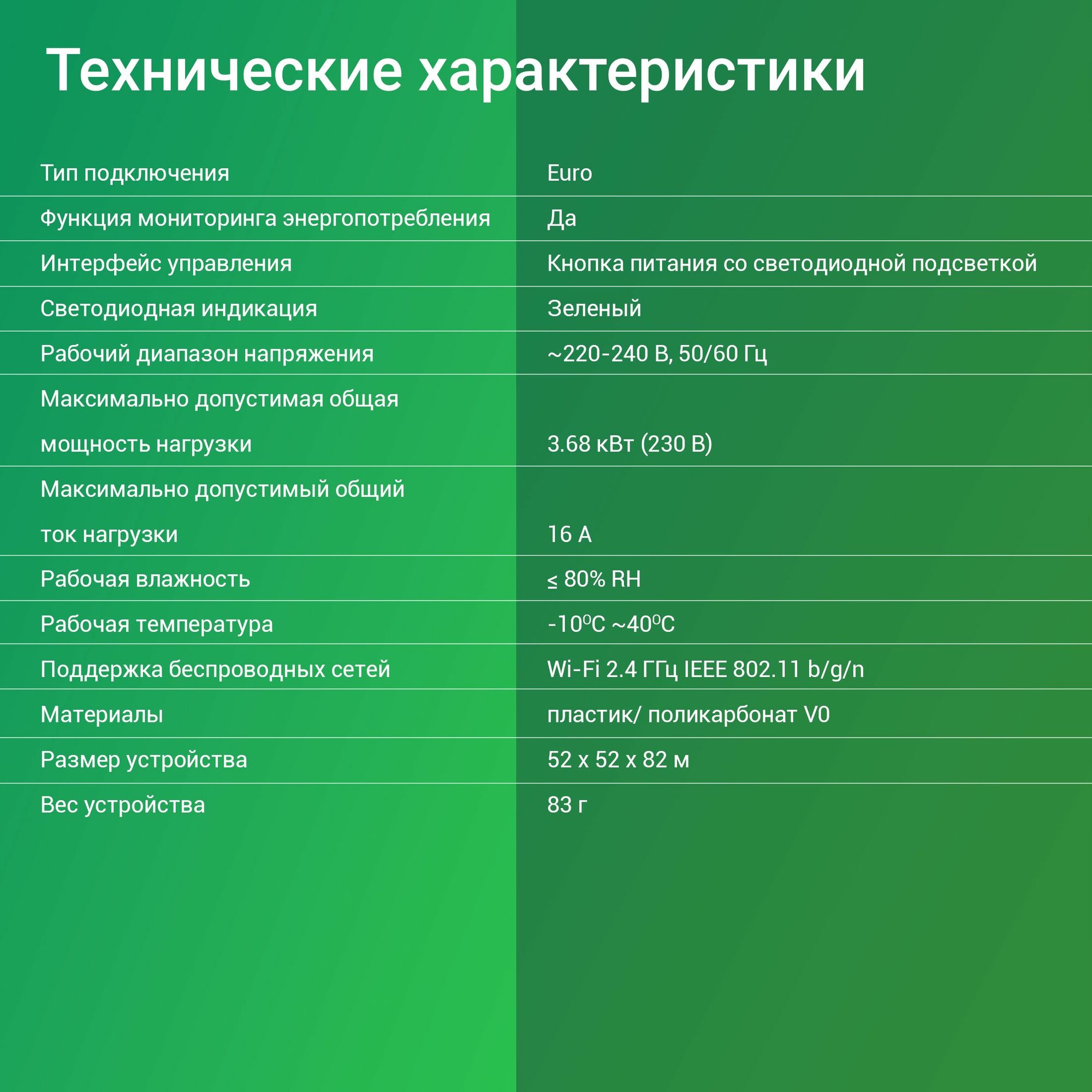 | Комплект поставки | умная розетка - 1 шт, руководство пользователя |