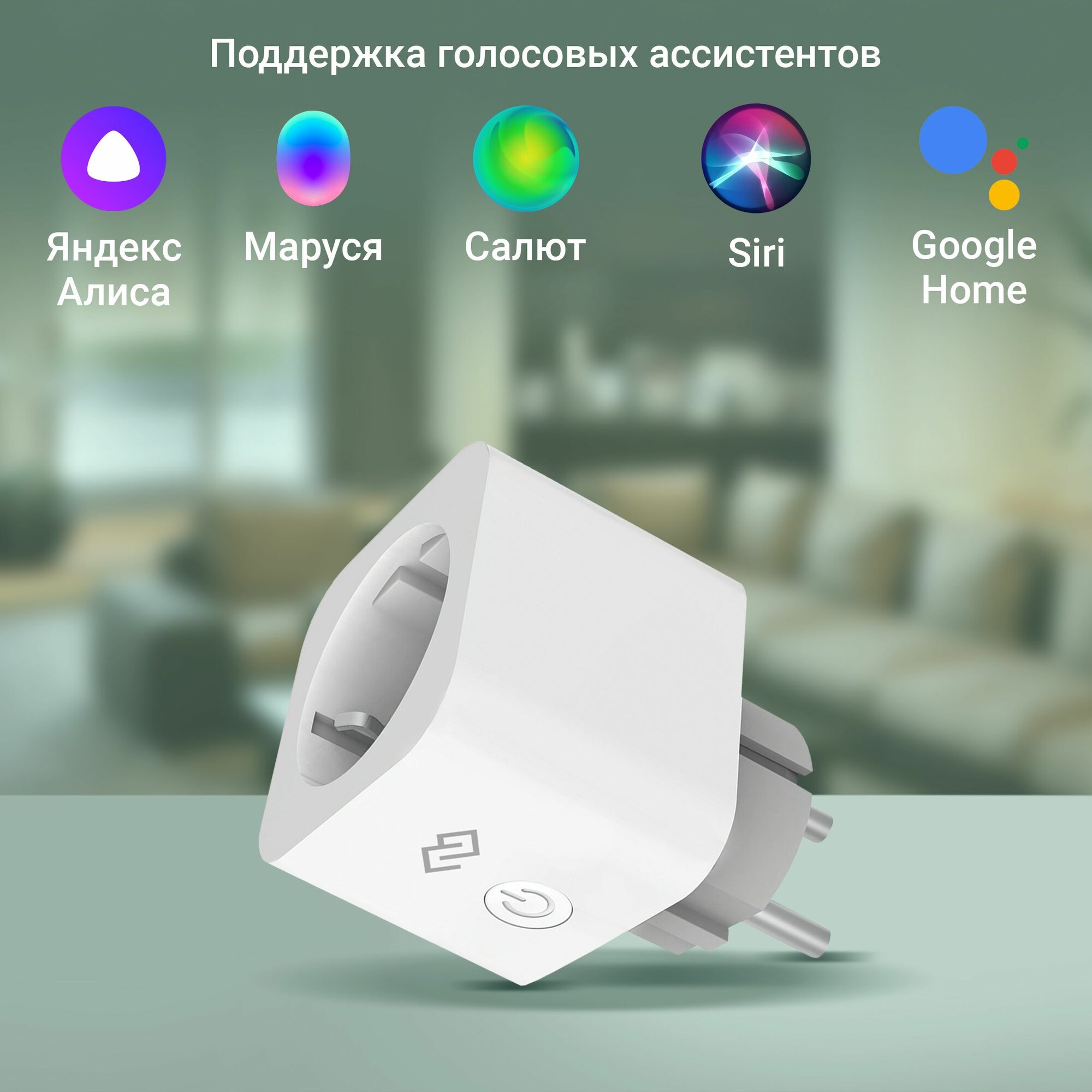 | Возможности | Работает с Алисой, Марусей, Салют, Google Assist, Siri, Alexa. Мониторинг потраченной электроэнергии для учёта и экономии. |