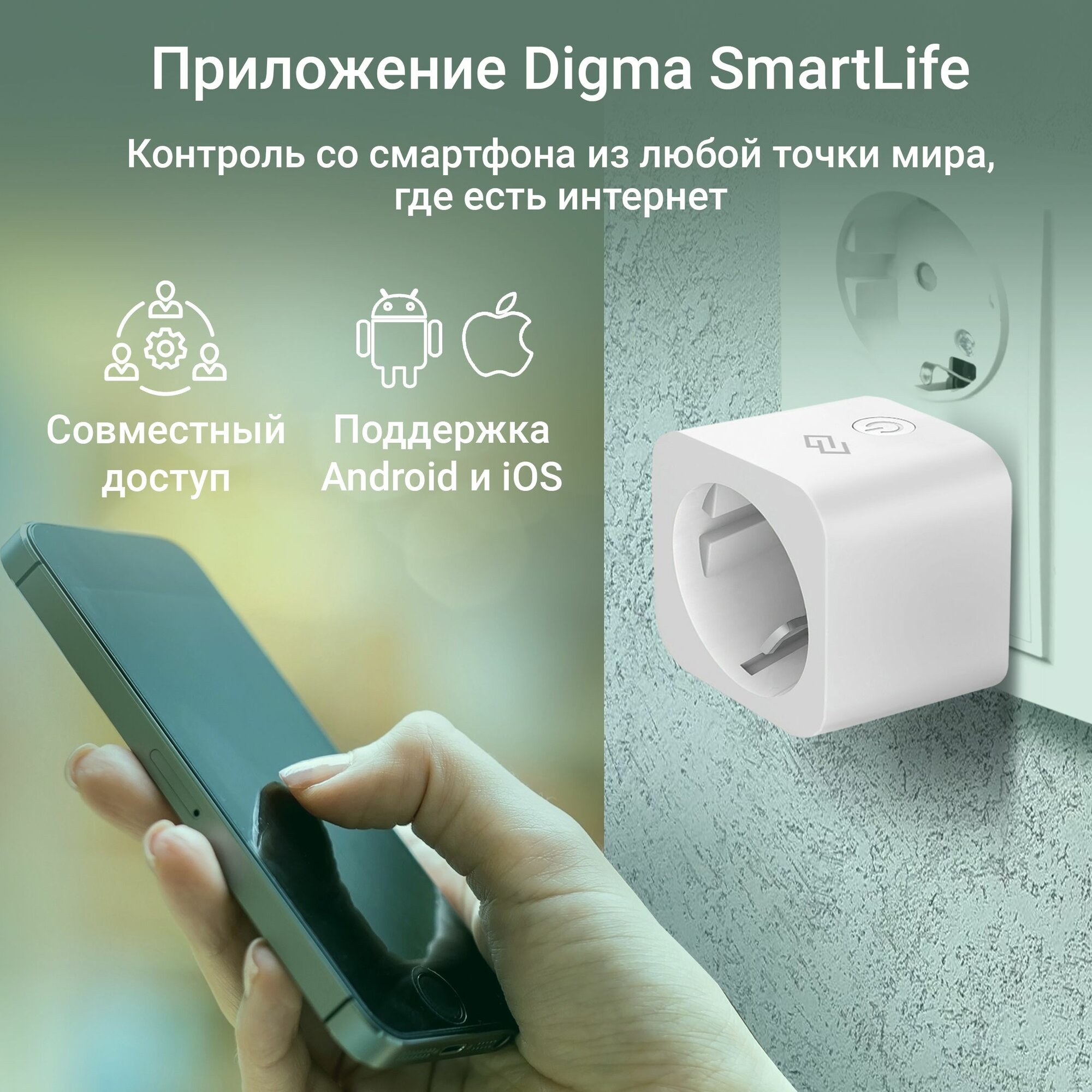 Умная розетка Digma DiPlug 200S EU Wi-Fi белый (DPL200S)