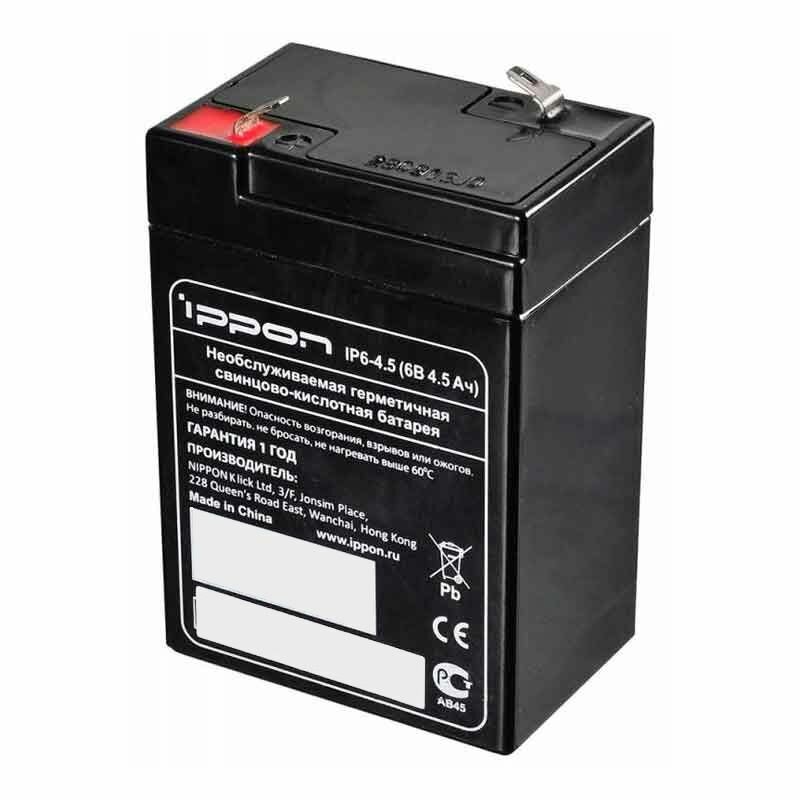 Необслуживаемая герметичная свинцово-кислотная батарея IPPON IP 6-4.5 (6 Вольт 4,5 Ампер-часов) предназначена для обеспечения резервным питанием систем охраны и безопасности, телекоммуникационного оборудования, промышленных объектов широкого назначения, работы в источниках бесперебойного питания.