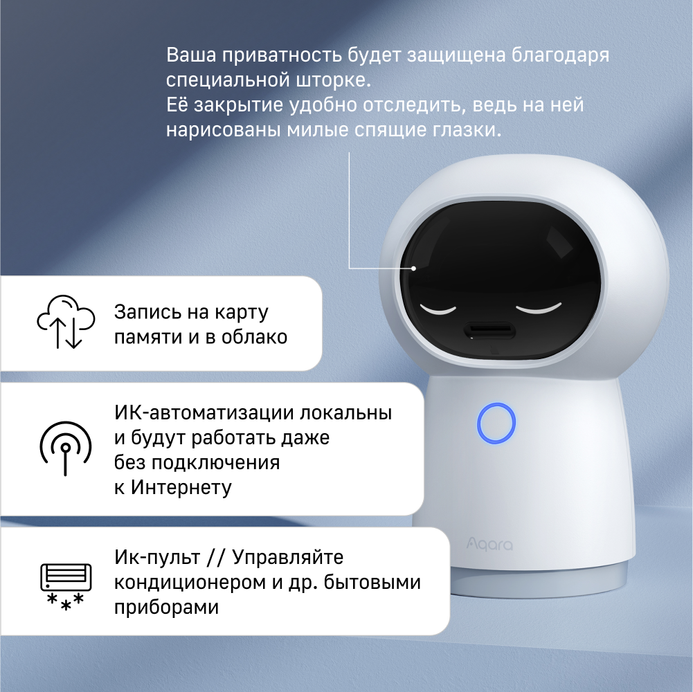 | Уникальное устройство | центр умного дома, камера видеонаблюдения и ИК-пульт. Распознаёт жесты и лица и запускает автоматизации. Управляет кондиционерами и другой бытовой техникой. Поддерживает подключение до 128 устройств Aqara по протоколу ZigBee 3.0. |
