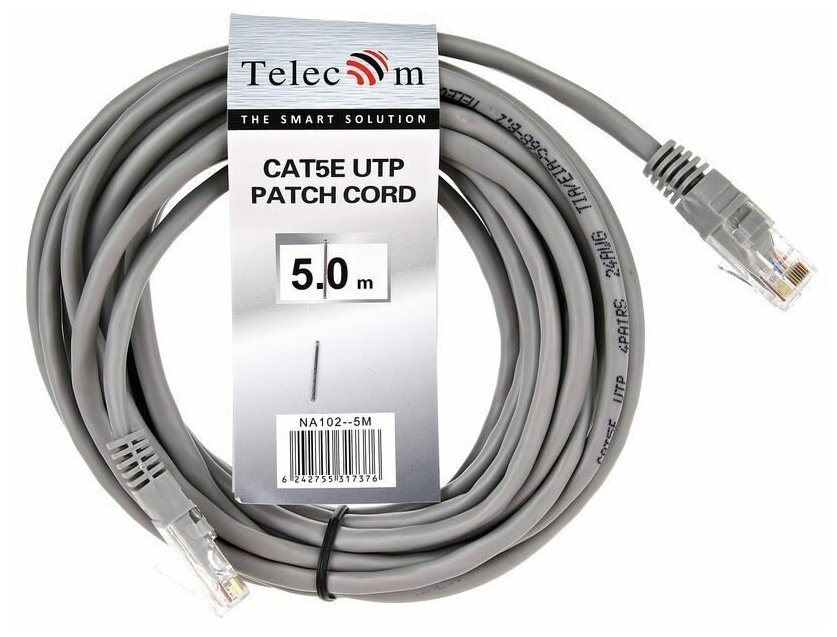 Патч-корд UTP 5e категории 5м серый CCA PVC Telecom NA102
