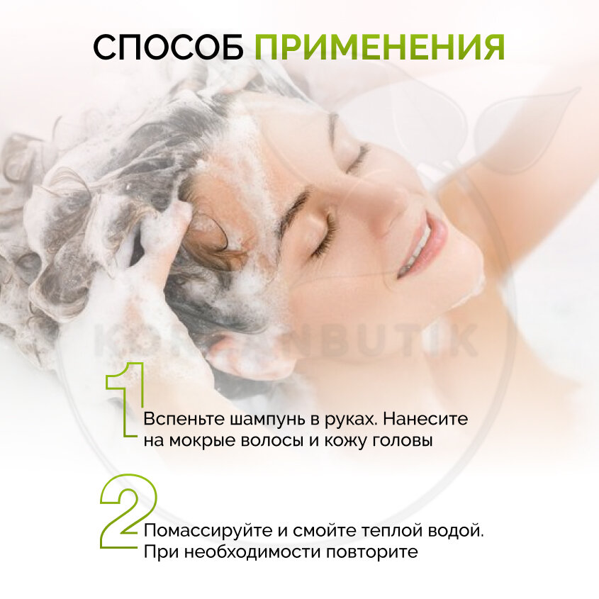 | Применение | нанесите шампунь на влажные чистые волосы и кожу головы, мягко помассируйте 2-3 минуты и тщательно смойте |