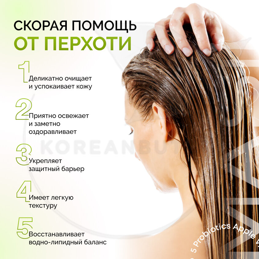 Шампунь от перхоти с яблочным уксусом Masil 5 Probiotics Apple Vinergar Shampoo эффективно оздоравливает кожу головы: отшелушивает ороговевший слой, насыщает клетки влагой и питательными веществами, укрепляет защитный барьер. Шампунь глубоко очищает, не вызывая сухости и шелушения, смягчает волосы и делает их более послушными. Содержит лактобактерии, яблочный уксус и салициловую кислоту.