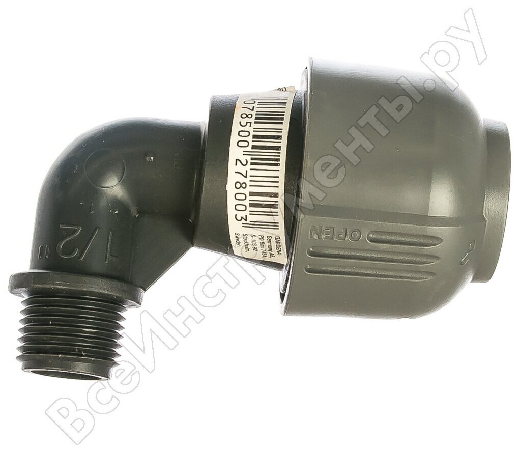 L-образный соединитель с наружной резьбой 25 мм x 1/2", входящий в систему дождевания GARDENA Sprinklersystem, используется для подсоединения выдвижных дождевателей S 80 и выдвижных турбодождевателей T 100 и T 200 в конце подающей линии. Благодаря запатентованной технологии простого соединения Quick & Easy ("Быстро и просто") соединение/разъединение труб осуществляется без инструментов, простым поворотом резьбового фитинга на 140°. Резьбовое соединение L-образного соединителя самогерметизируется, что обеспечивает безопасность работы и водонепроницаемость.